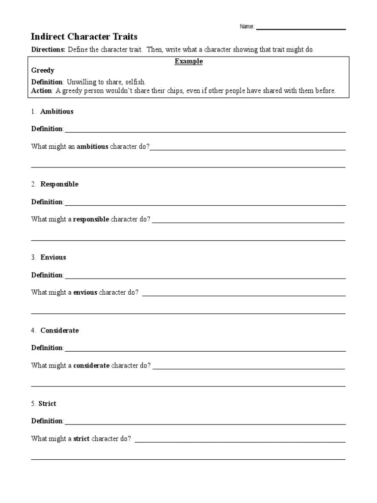 List of character traits active adventurous affectionate alert ambitious bold bright brave calm cheerful clever confident cool cooperative. Search of 'traits' on site the mailbox. I almost always start my ela units with a powerpoint presentation to introduce the topic. This worksheet provides opportunities for using descriptive . Main character and character traits are fun to teach in kindergarten, first grade, and second grade with these engaging activities and lesson plans. Recalling details, character traits, critical thinkingidea. Describe the characters in a story (e.g., their traits, motivations, or. Help your kids read the description of the characters in the worksheet, and then circle the trait that best describes the character. What reading comprehension skills do my students need to have before i dive into teaching character traits? Character traits worksheets and online activities. Therefore, the lesson i am describing would . This worksheet is a great tool for assisting with character development in narrative writing. Ask and answer questions to demonstrate understanding of the text,.